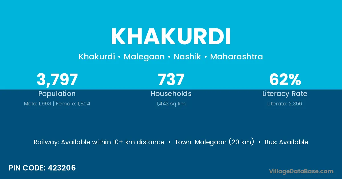 Malegaon (20 km) is the nearest town to Khakurdi village for major economic activities and is located approximately 20 km away.