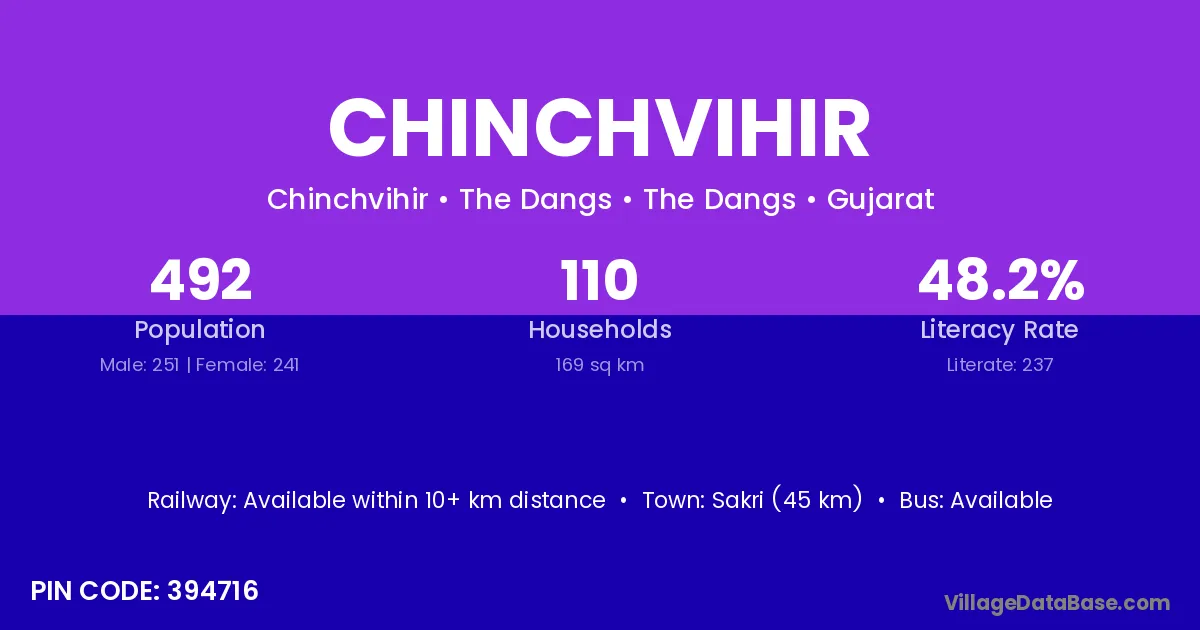 Chinchvihir village has a total population of 1,159 people, of which 600 are males and 559 are females.