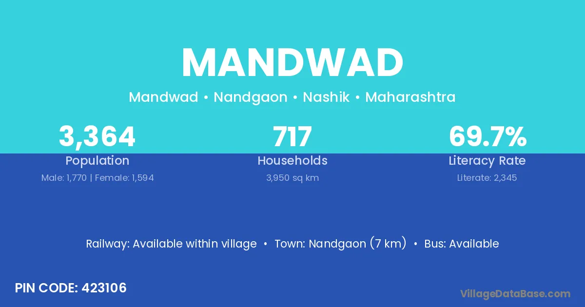 Nandgaon (7 km) is the nearest town to Mandwad village for major economic activities and is located approximately 7 km away.