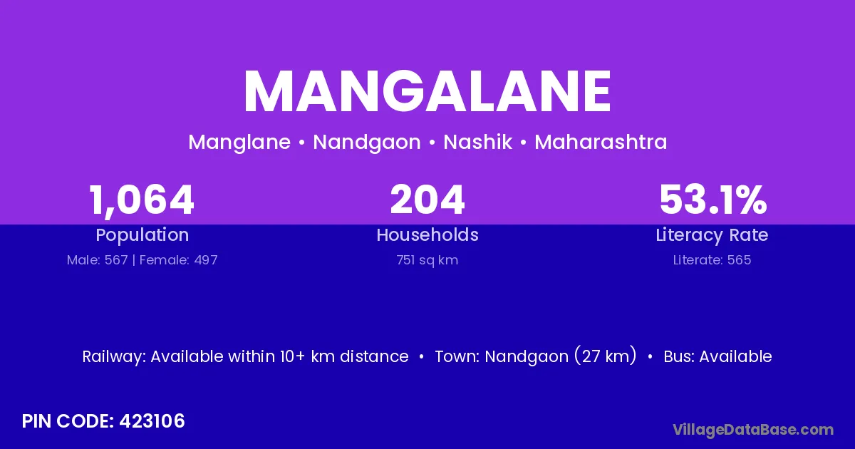 Nandgaon (27 km) is the nearest town to Mangalane village for major economic activities and is located approximately 27 km away.