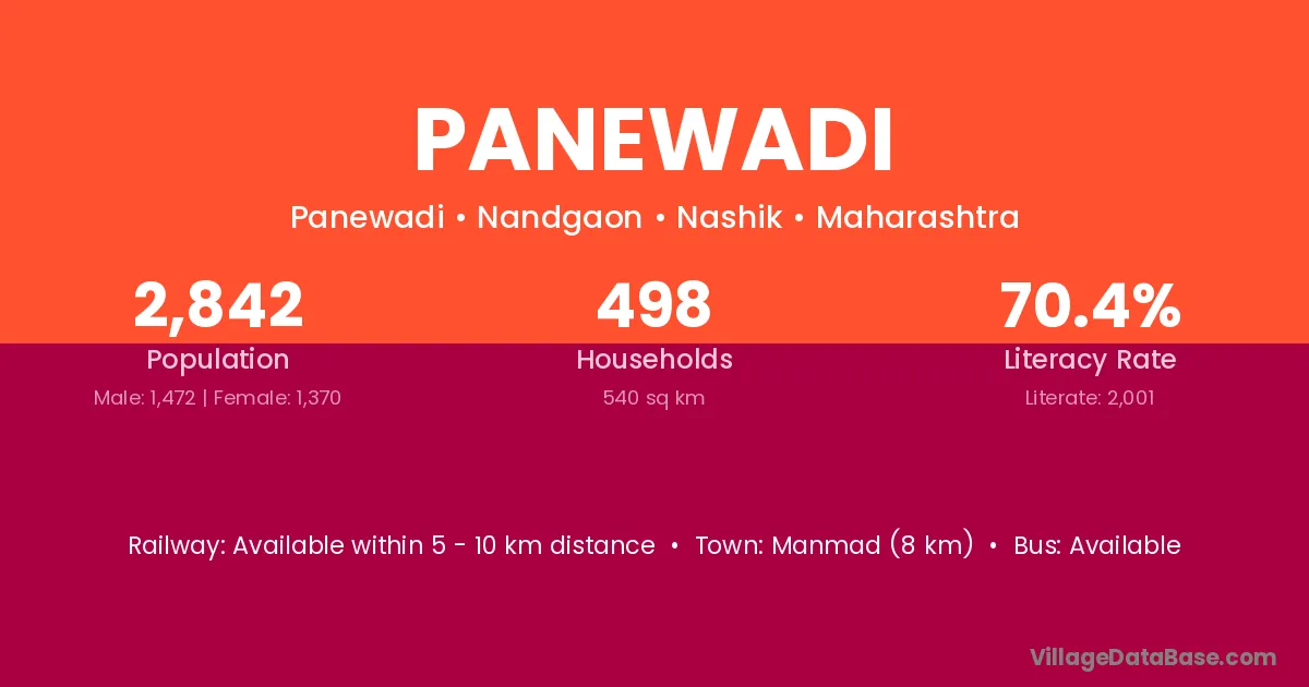 Manmad (8 km) is the nearest town to Panewadi village for major economic activities and is located approximately 8 km away.