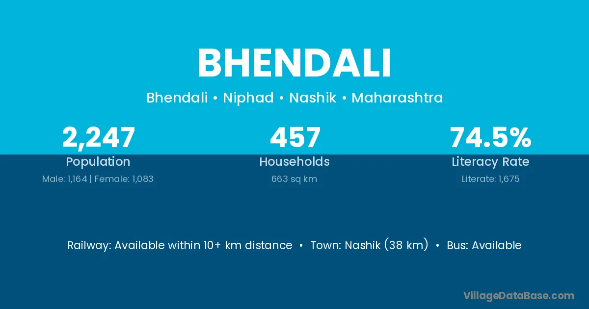 Nashik (38 km) is the nearest town to Bhendali village for major economic activities and is located approximately 38 km away.