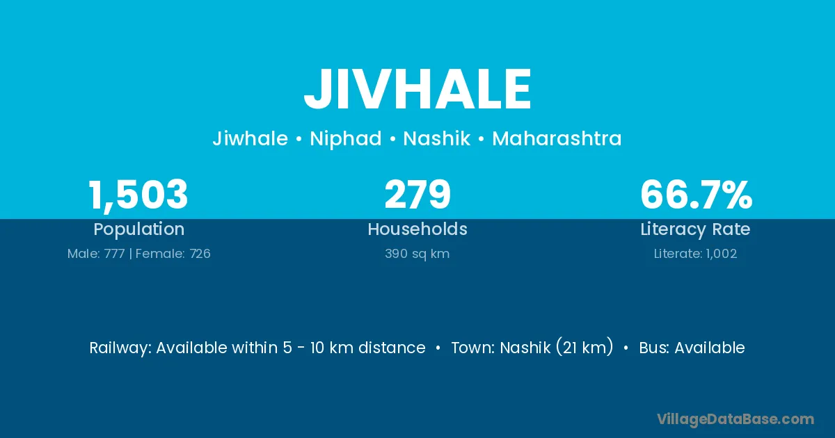 Nashik (21 km) is the nearest town to Jivhale village for major economic activities and is located approximately 21 km away.