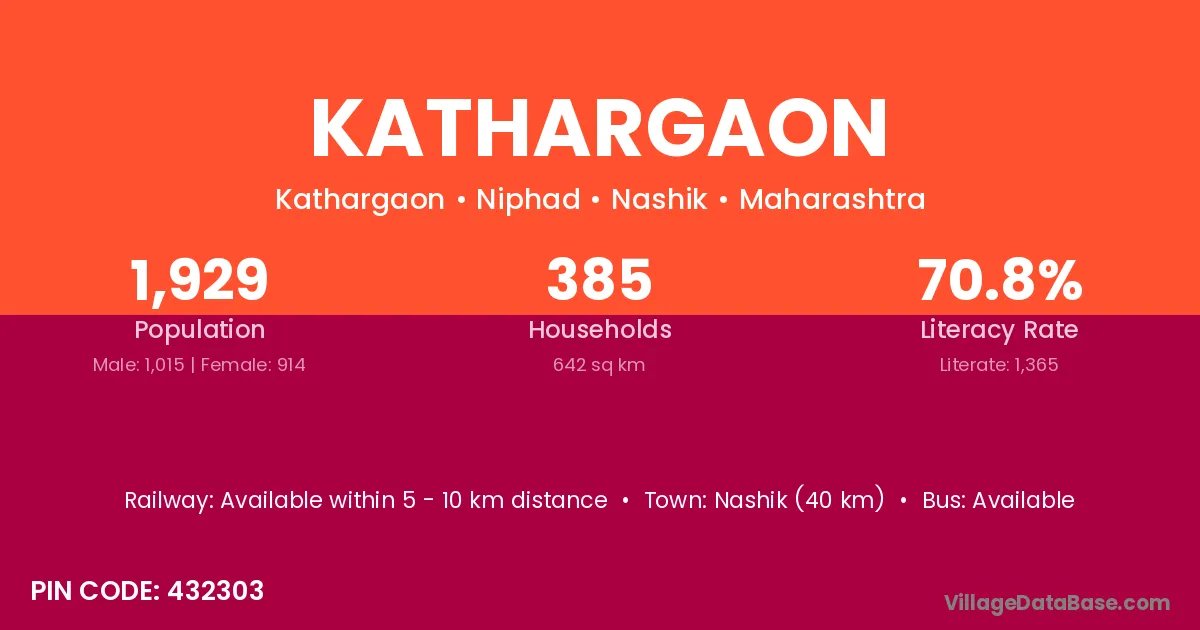 Nashik (40 km) is the nearest town to Kathargaon village for major economic activities and is located approximately 40 km away.