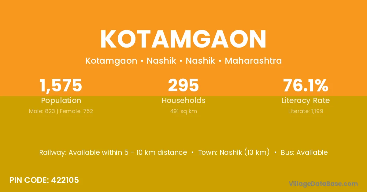 Yevla (4 km) is the nearest town to Kotamgaon village for major economic activities and is located approximately 4 km away.
