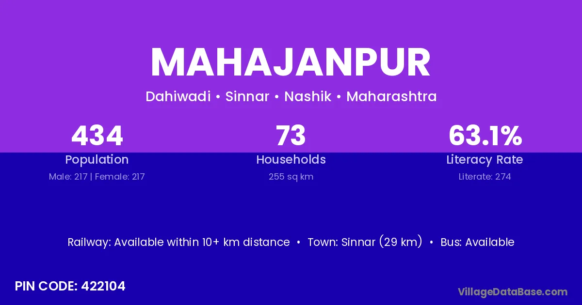 Nashik (35 km) is the nearest town to Mahajanpur village for major economic activities and is located approximately 35 km away.