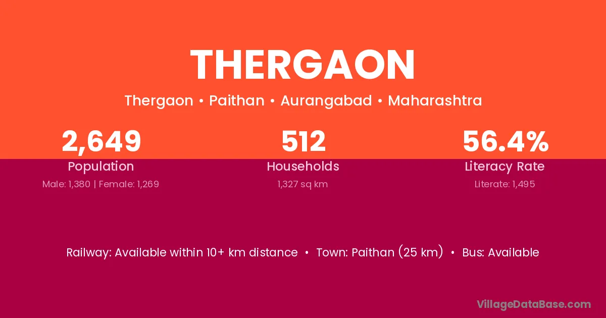 Nashik (22 km) is the nearest town to Thergaon village for major economic activities and is located approximately 22 km away.