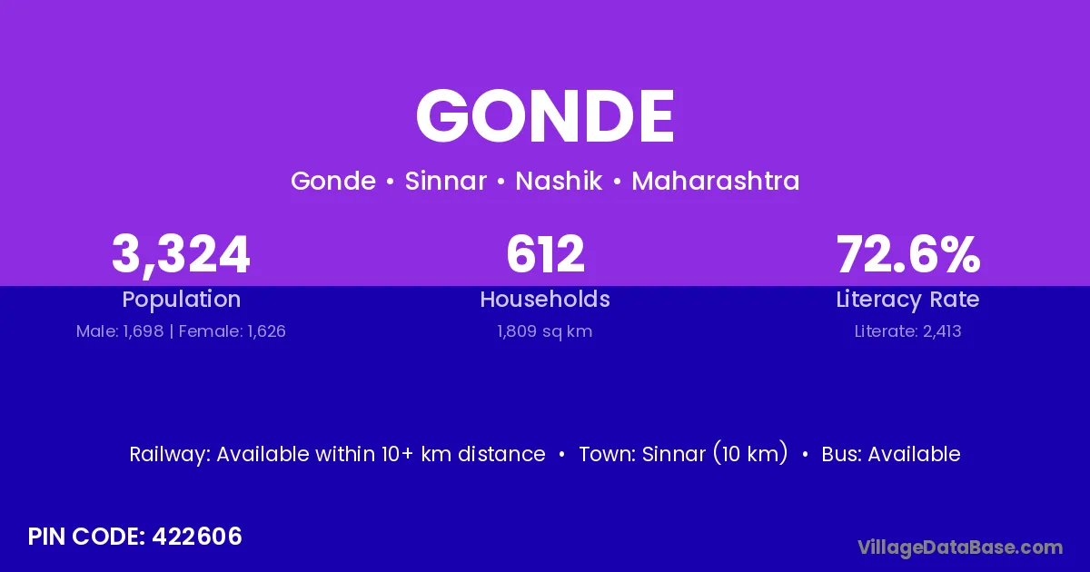 Nashik (56 km) is the nearest town to Gonde village for major economic activities and is located approximately 56 km away.