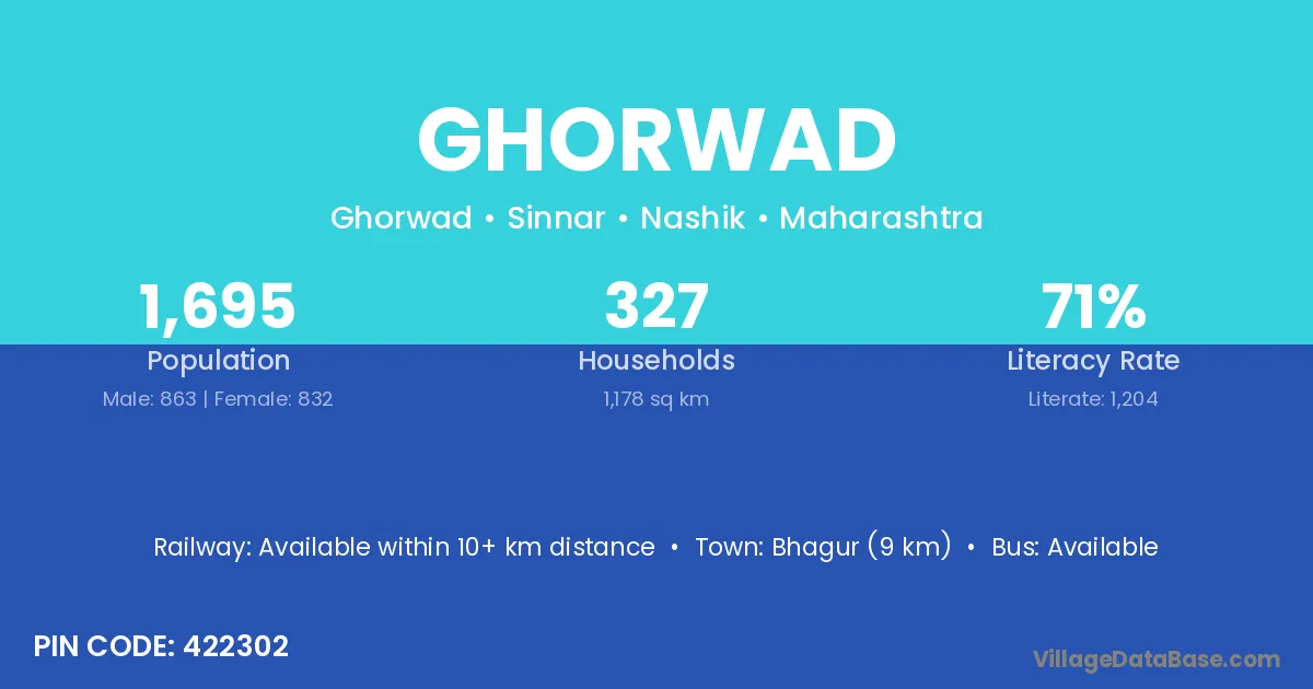 Bhagur (9 km) is the nearest town to Ghorwad village for major economic activities and is located approximately 9 km away.