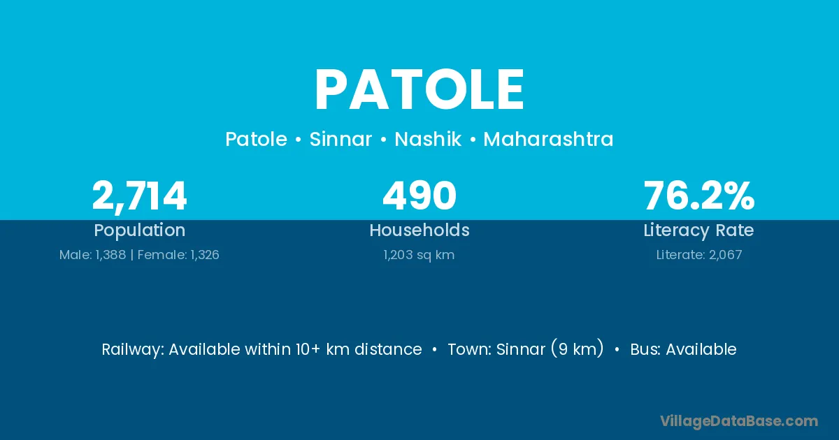 Sinnar (9 km) is the nearest town to Patole village for major economic activities and is located approximately 9 km away.