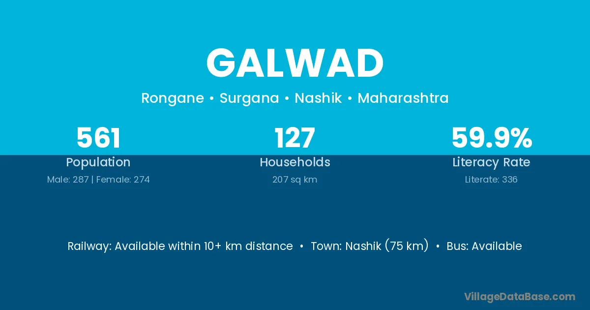 Nashik (75 km) is the nearest town to Galwad village for major economic activities and is located approximately 75 km away.