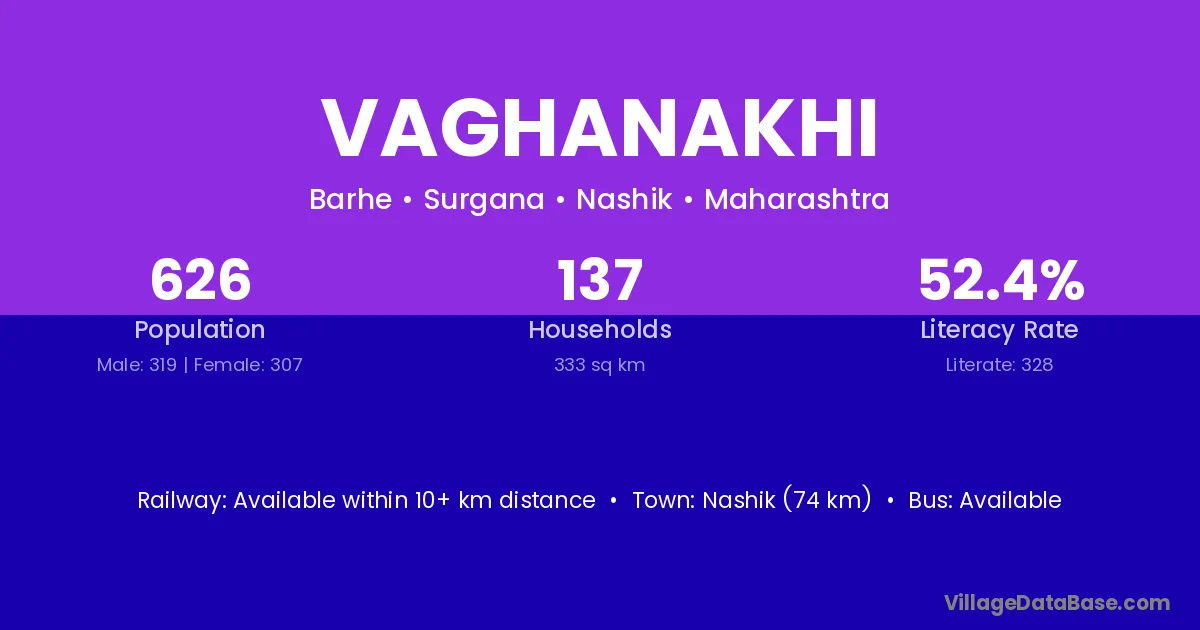 Nashik (74 km) is the nearest town to Vaghanakhi village for major economic activities and is located approximately 74 km away.