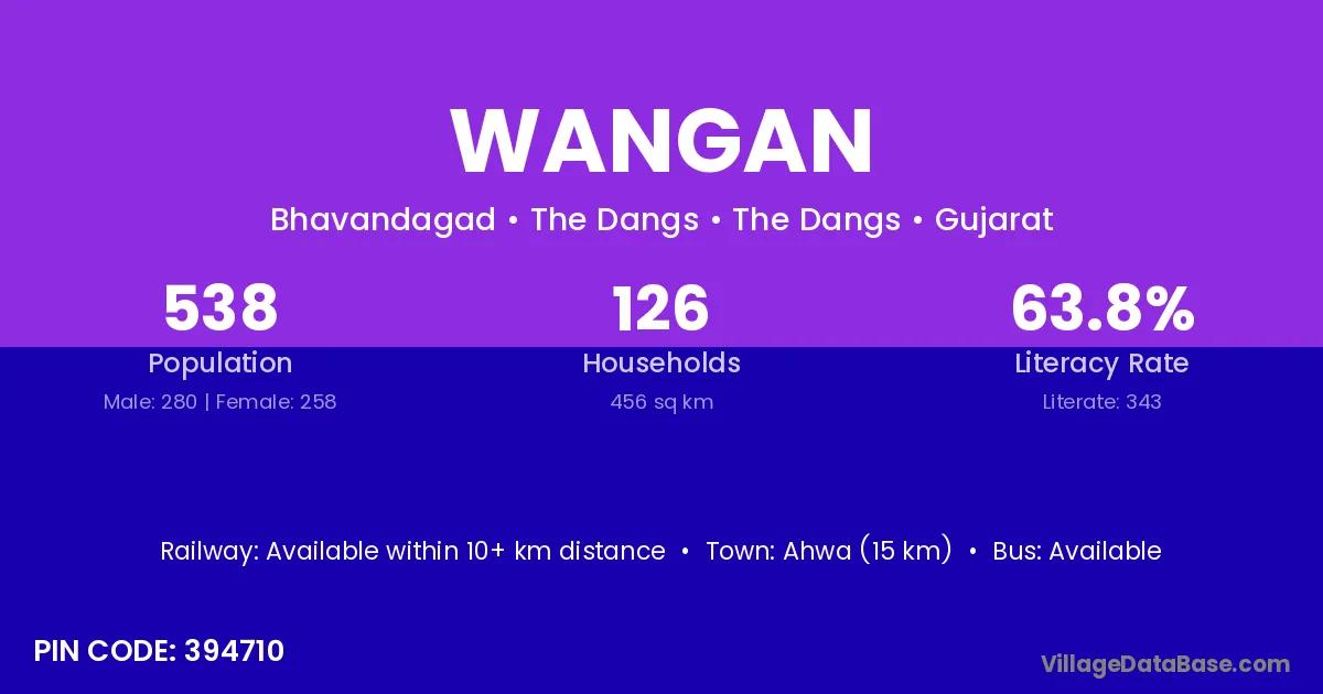 Nashik (115 km) is the nearest town to Wangan village for major economic activities and is located approximately 115 km away.