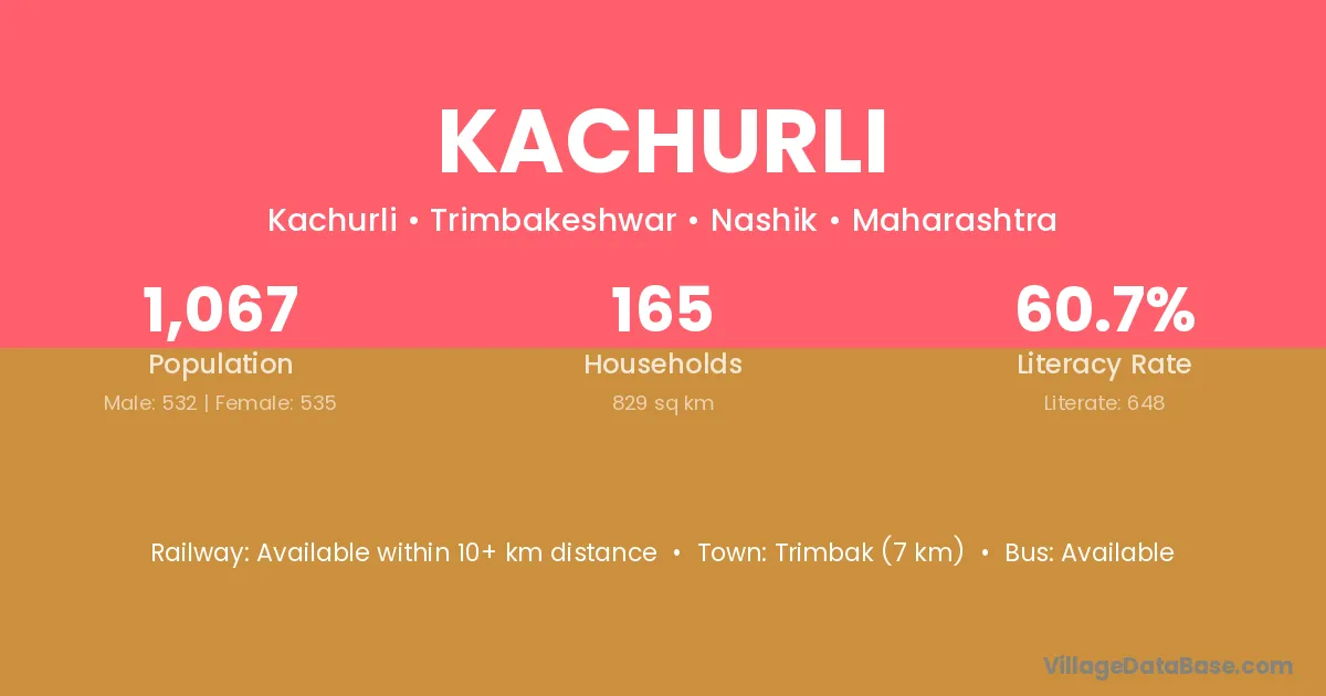 Trimbak (7 km) is the nearest town to Kachurli village for major economic activities and is located approximately 7 km away.