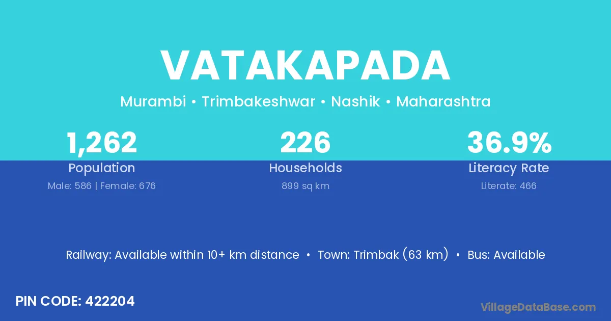 Trimbak (63 km) is the nearest town to Vatakapada village for major economic activities and is located approximately 63 km away.