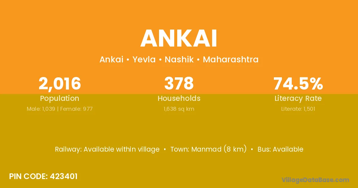 Manmad (8 km) is the nearest town to Ankai village for major economic activities and is located approximately 8 km away.