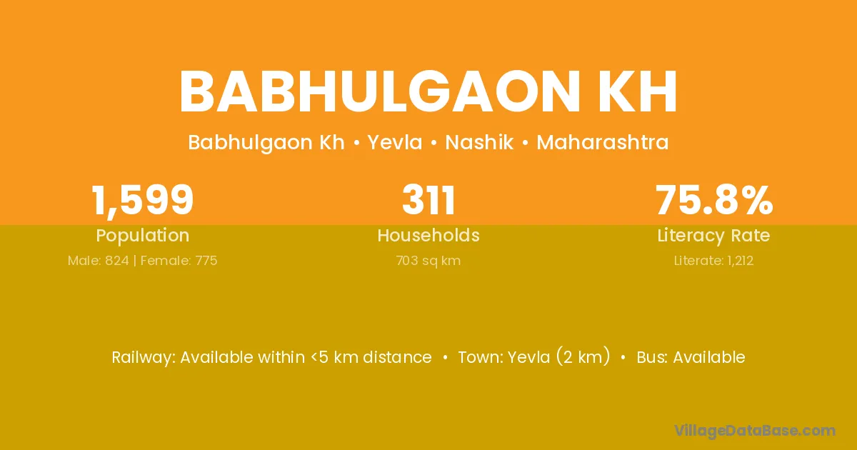 Yevla (2 km) is the nearest town to Babhulgaon Kh village for major economic activities and is located approximately 2 km away.