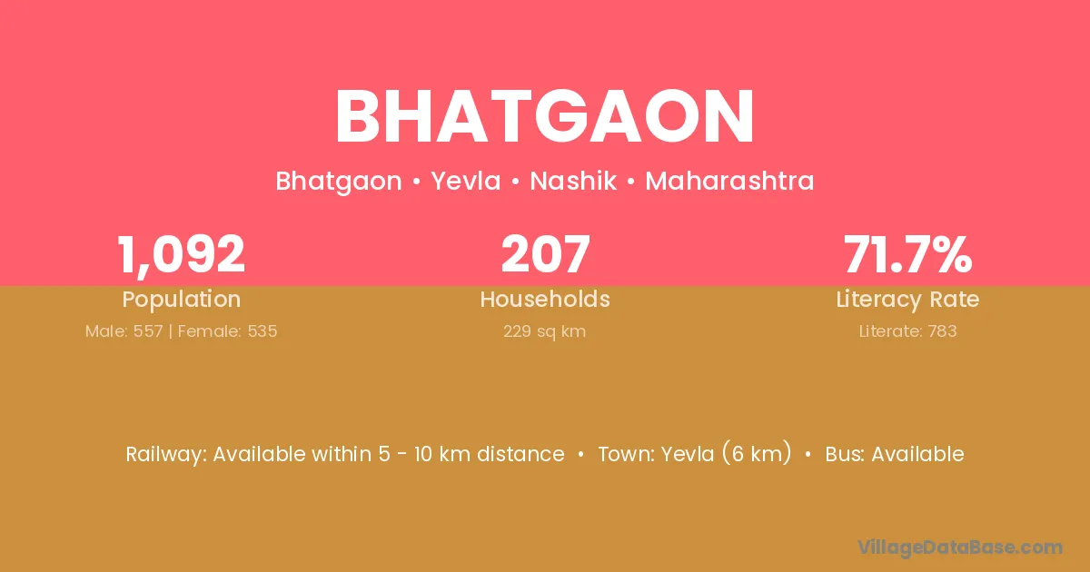Yevla (6 km) is the nearest town to Bhatgaon village for major economic activities and is located approximately 6 km away.