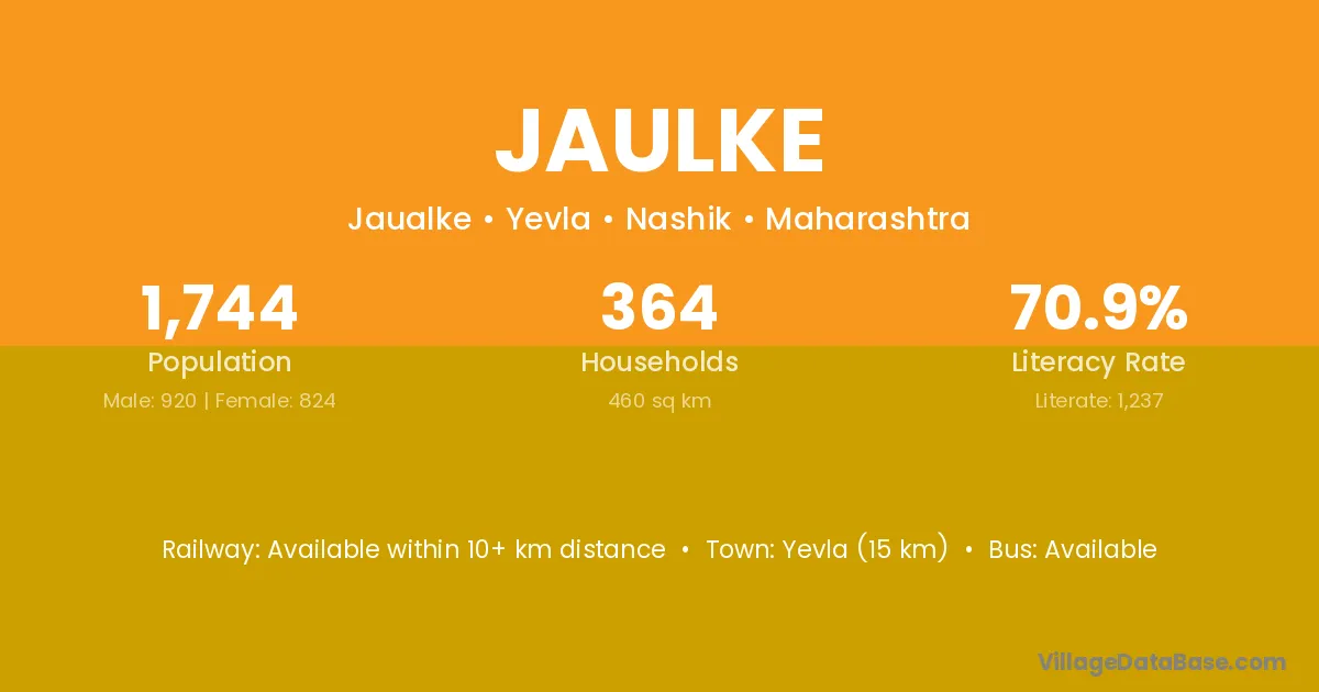 Yevla (15 km) is the nearest town to Jaulke village for major economic activities and is located approximately 15 km away.