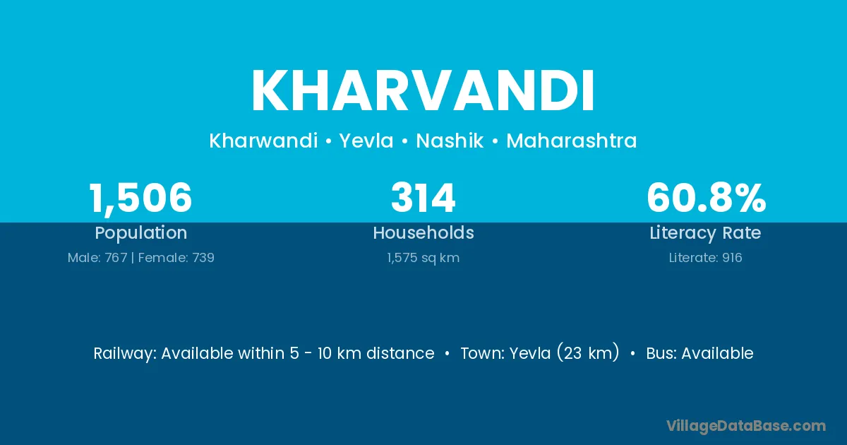 Yevla (23 km) is the nearest town to Kharvandi village for major economic activities and is located approximately 23 km away.
