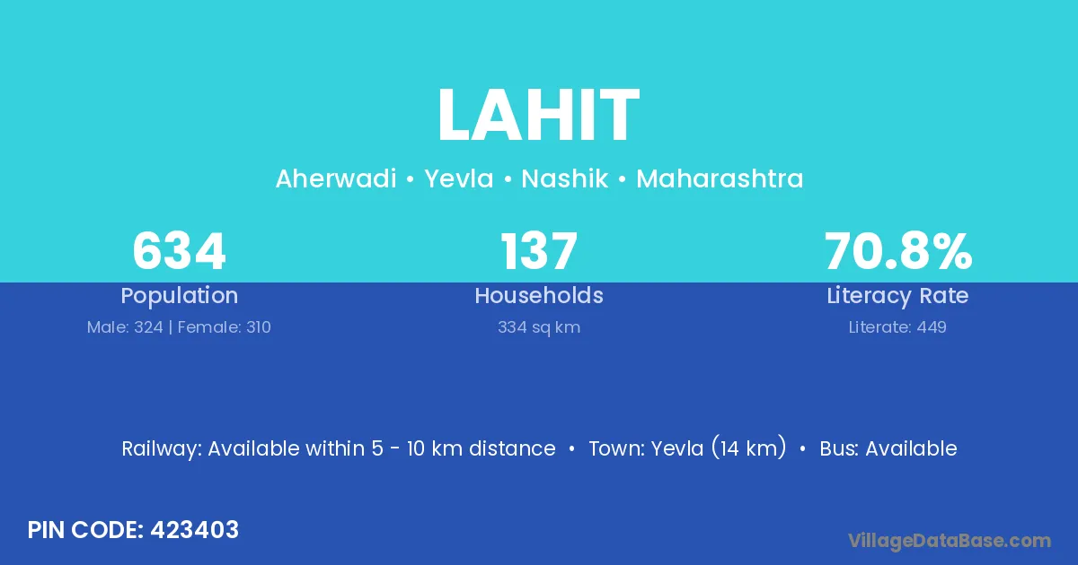 Yevla (14 km) is the nearest town to Lahit village for major economic activities and is located approximately 14 km away.