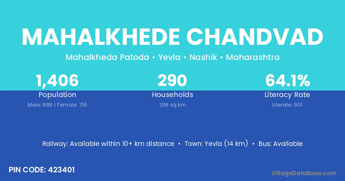 Mahalkhede Chandvad village has a total population of 1,406 people, of which 688 are males and 718 are females.