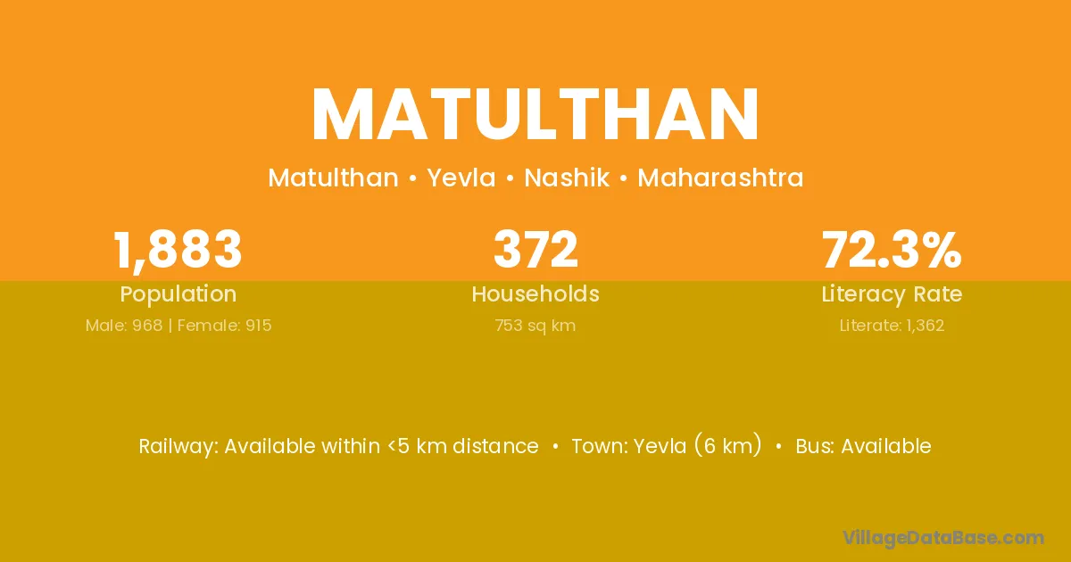 Yevla (6 km) is the nearest town to Matulthan village for major economic activities and is located approximately 6 km away.