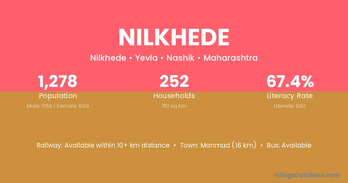 Manmad (16 km) is the nearest town to Nilkhede village for major economic activities and is located approximately 16 km away.