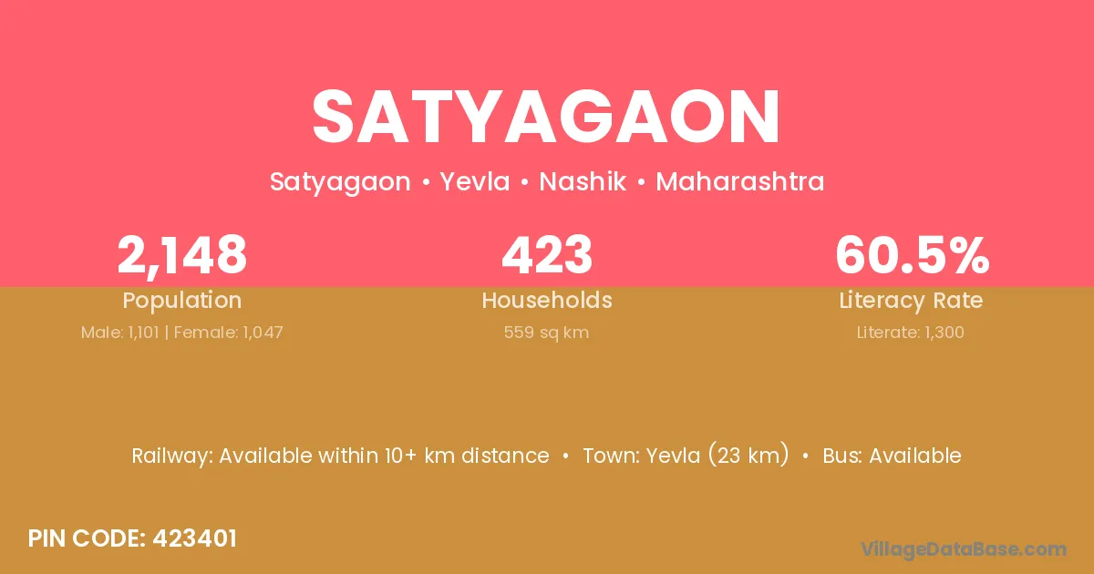 Yevla (23 km) is the nearest town to Satyagaon village for major economic activities and is located approximately 23 km away.