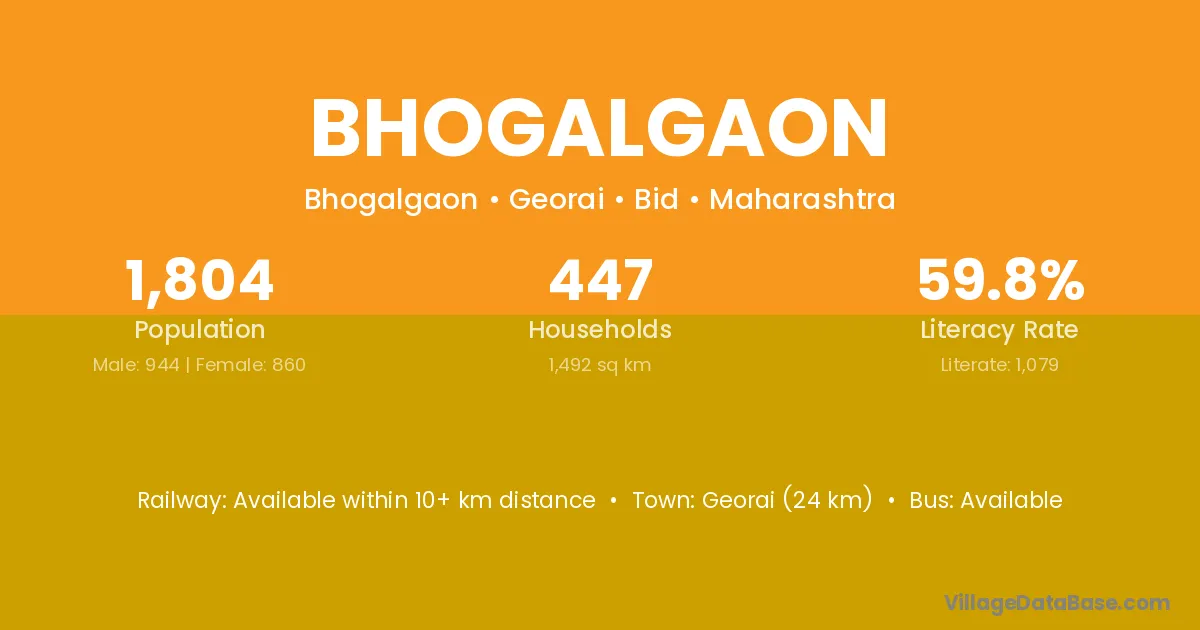 Bhum (20 km) is the nearest town to Bhogalgaon village for major economic activities and is located approximately 20 km away.
