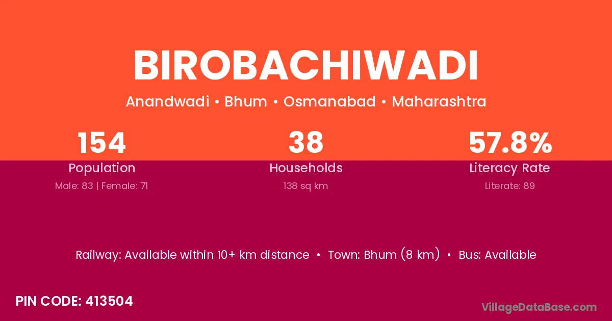 Birobachiwadi village has a total population of 154 people, of which 83 are males and 71 are females.