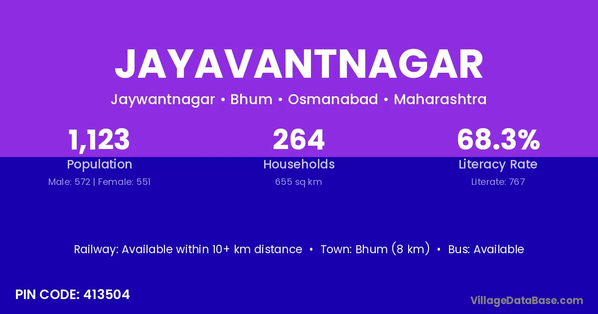 Bhum (8 km) is the nearest town to Jayavantnagar village for major economic activities and is located approximately 8 km away.