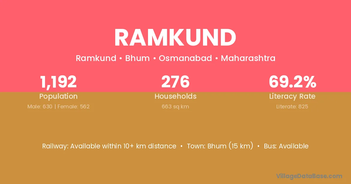 Ramkund village has a total population of 1,192 people, of which 630 are males and 562 are females.