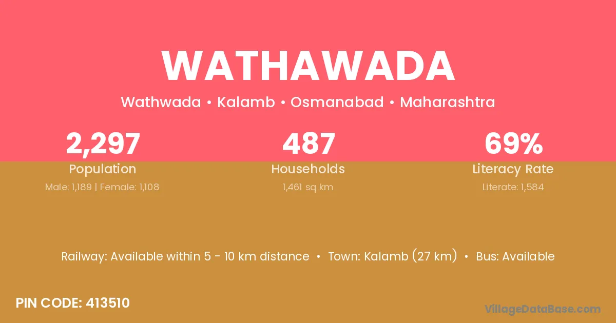 Kalamb (27 km) is the nearest town to Wathawada village for major economic activities and is located approximately 27 km away.