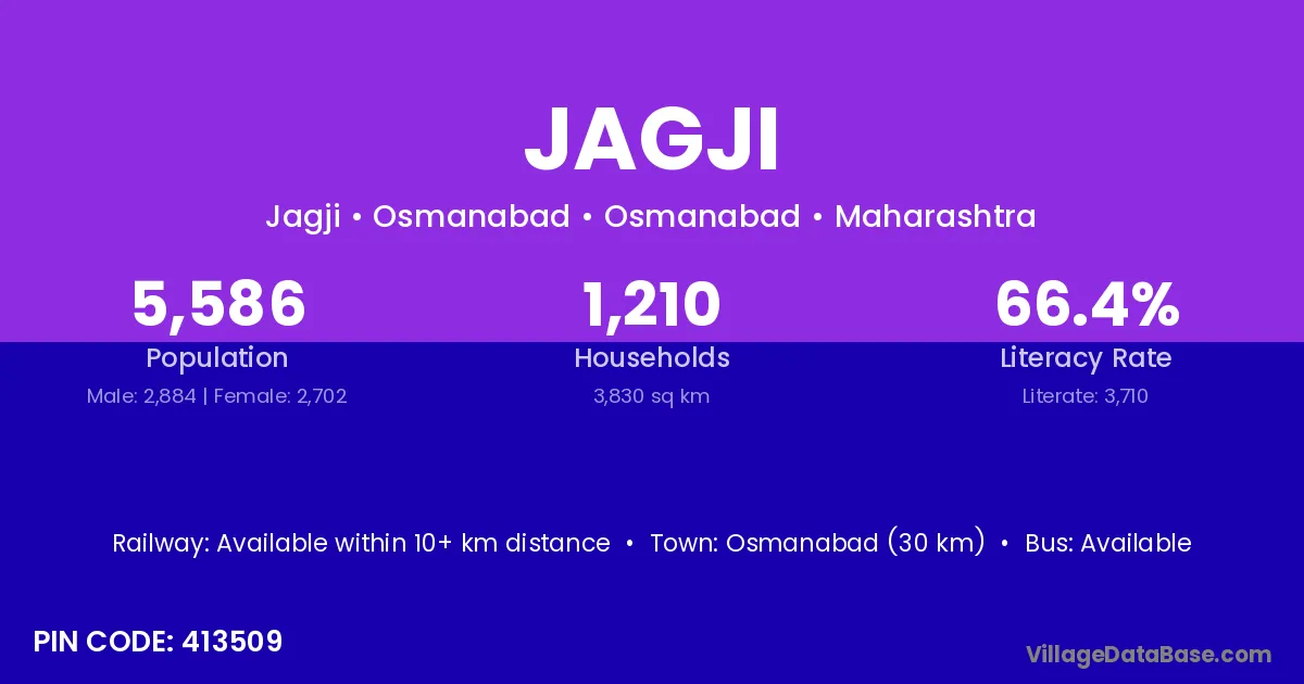 Osmanabad (30 km) is the nearest town to Jagji village for major economic activities and is located approximately 30 km away.