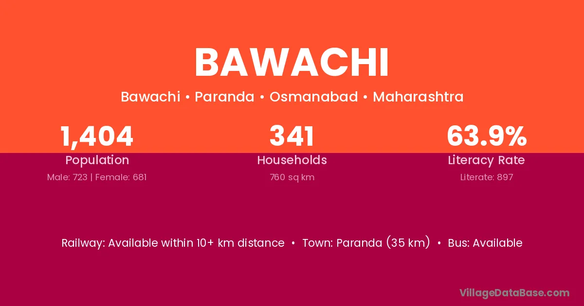 Paranda (35 km) is the nearest town to Bawachi village for major economic activities and is located approximately 35 km away.