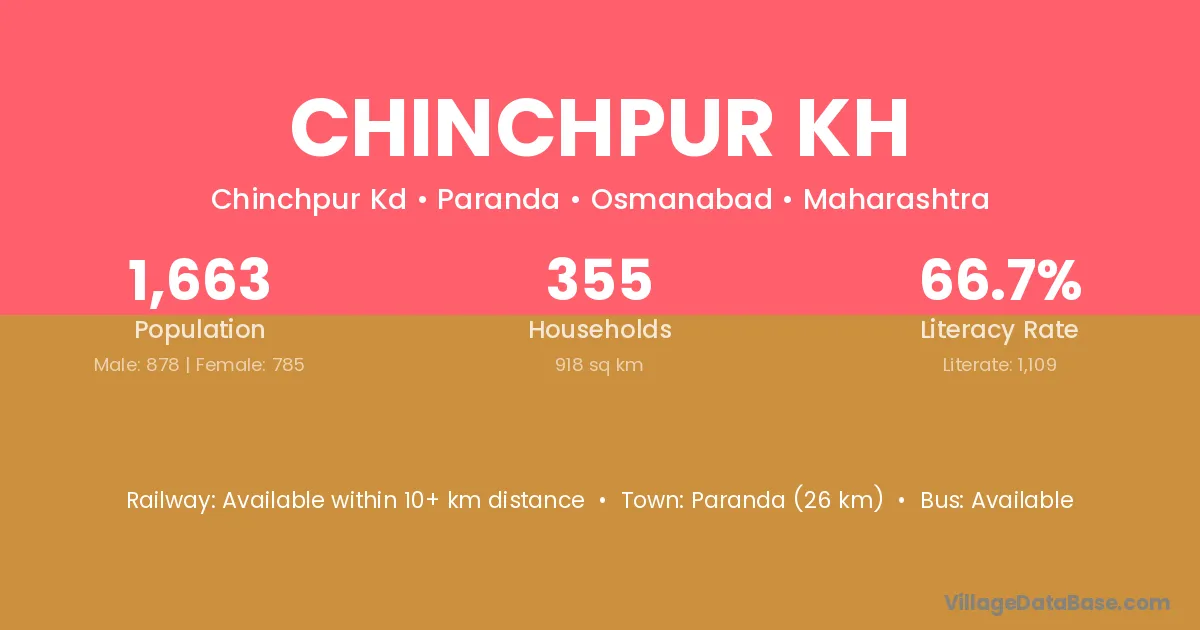 Paranda (26 km) is the nearest town to Chinchpur Kh village for major economic activities and is located approximately 26 km away.
