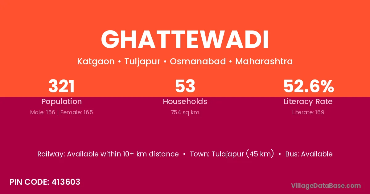 Ghattewadi village has a total population of 321 people, of which 156 are males and 165 are females.