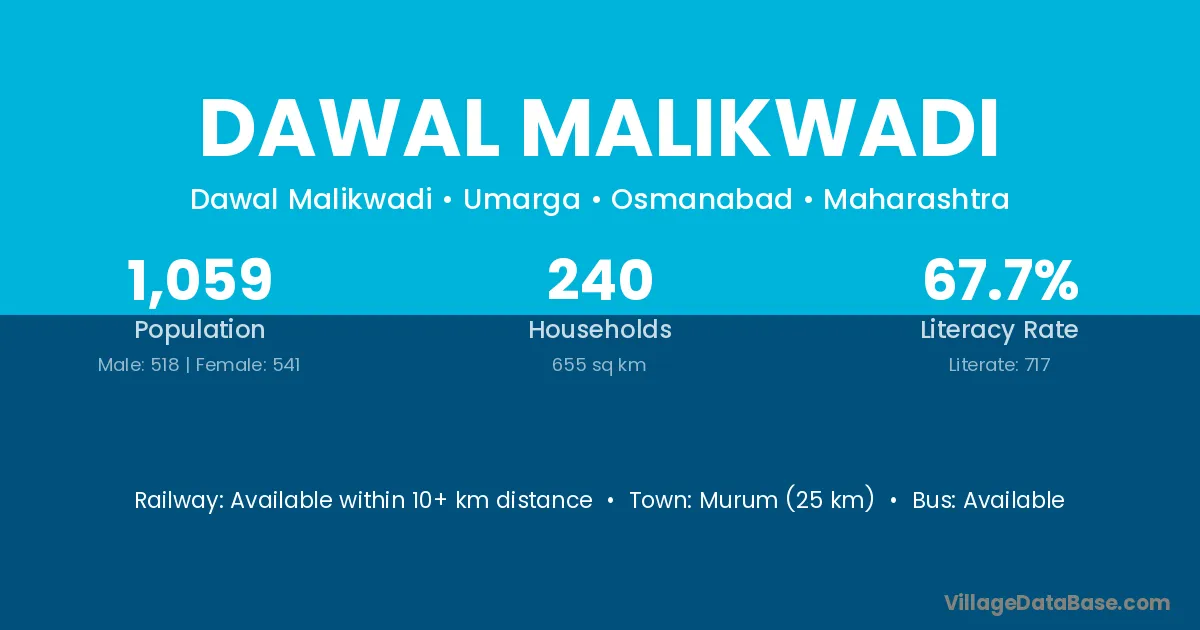Dawal Malikwadi village has a total population of 1,059 people, of which 518 are males and 541 are females.