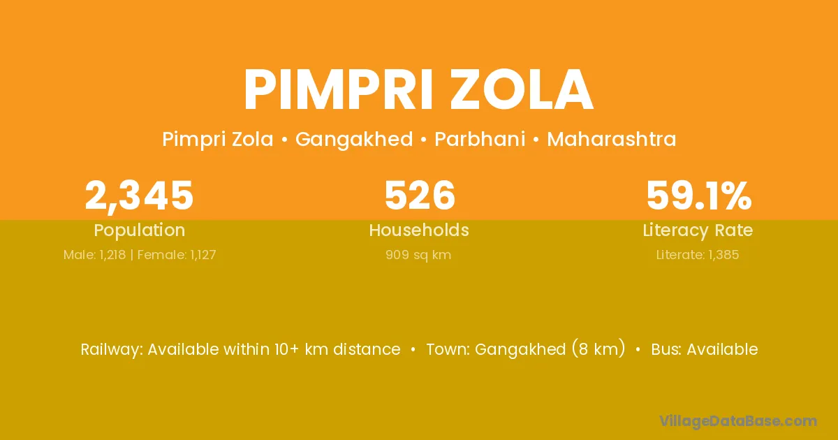 Gangakhed (8 km) is the nearest town to Pimpri Zola village for major economic activities and is located approximately 8 km away.