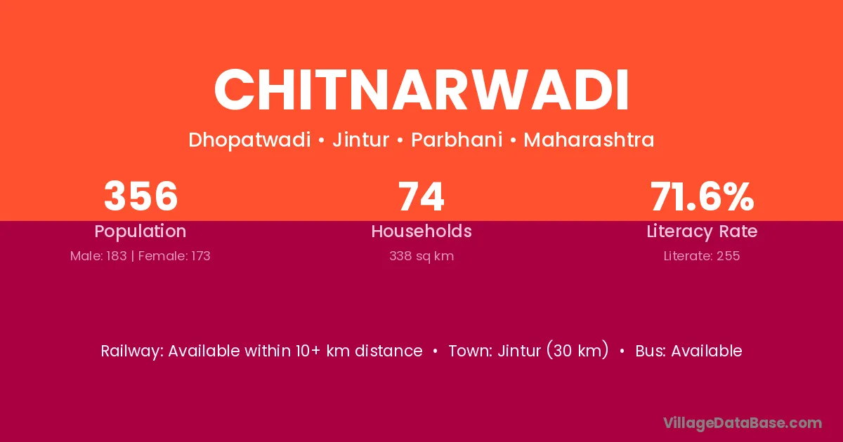 Chitnarwadi village has a total population of 356 people, of which 183 are males and 173 are females.