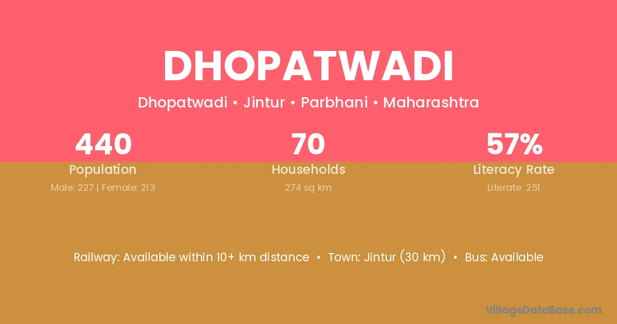 Dhopatwadi village has a total population of 440 people, of which 227 are males and 213 are females.