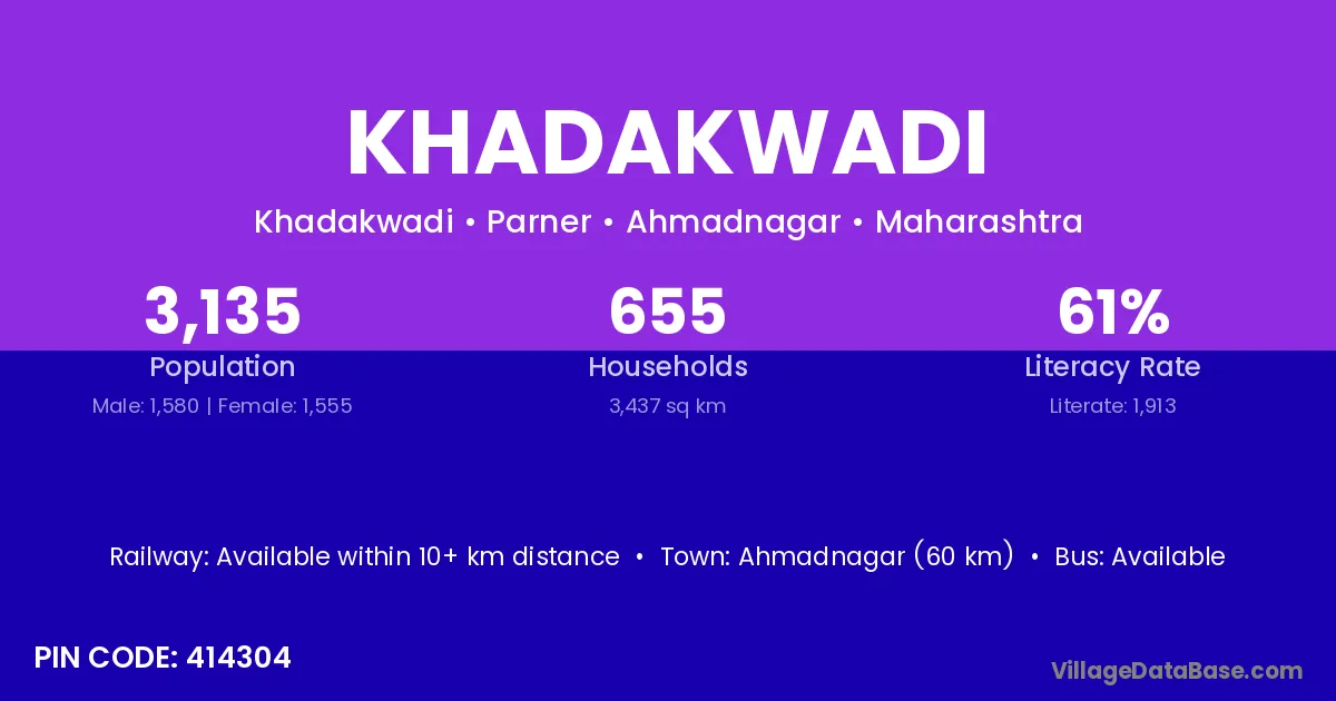 Manwath (9 km) is the nearest town to Khadakwadi village for major economic activities and is located approximately 9 km away.