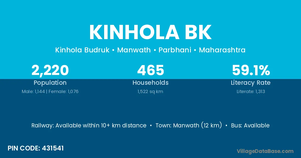 Manwath (12 km) is the nearest town to Kinhola Bk village for major economic activities and is located approximately 12 km away.