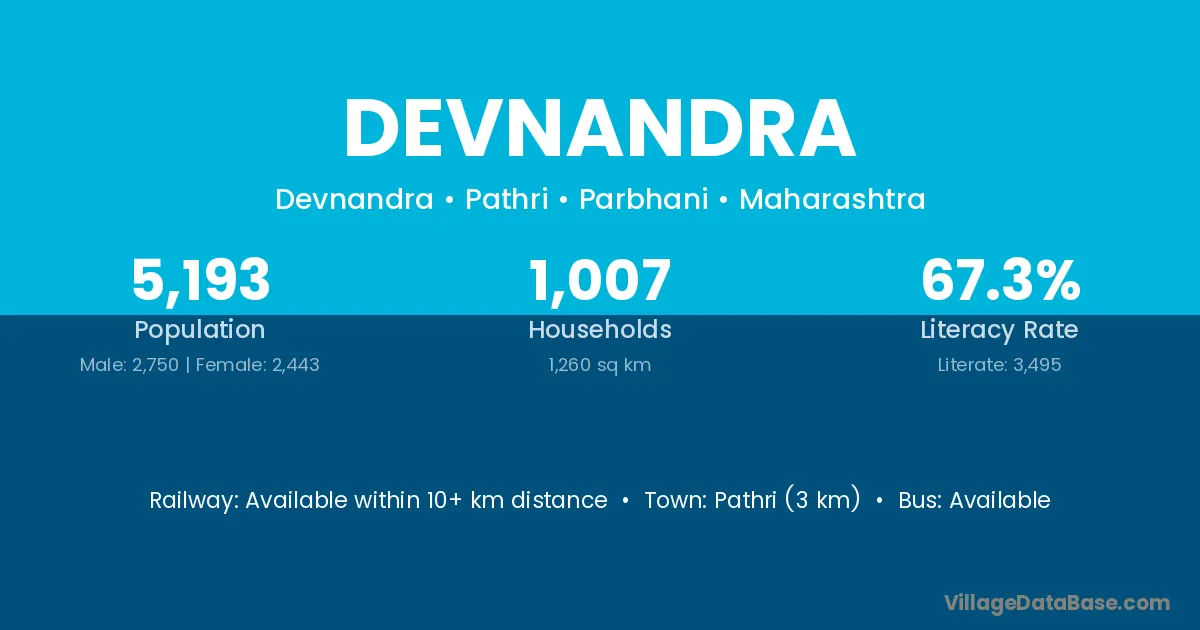 Devnandra village has a total population of 5,193 people, of which 2,750 are males and 2,443 are females.