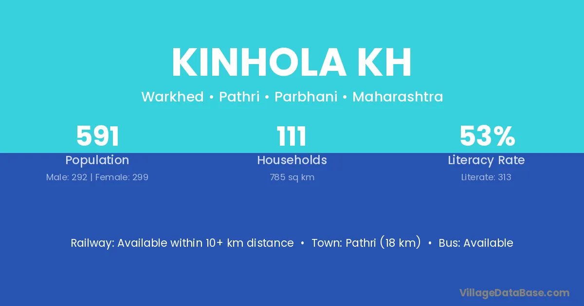 Kinhola Kh village has a total population of 591 people, of which 292 are males and 299 are females.