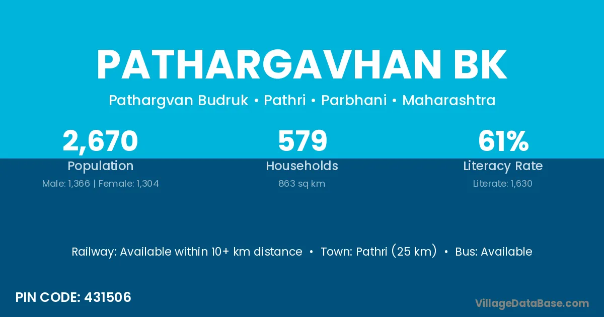 Pathri (25 km) is the nearest town to Pathargavhan Bk village for major economic activities and is located approximately 25 km away.