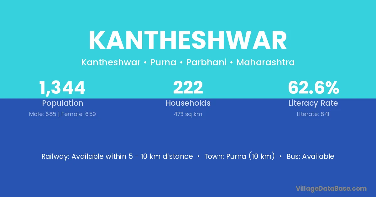 Kantheshwar village has a total population of 1,344 people, of which 685 are males and 659 are females.