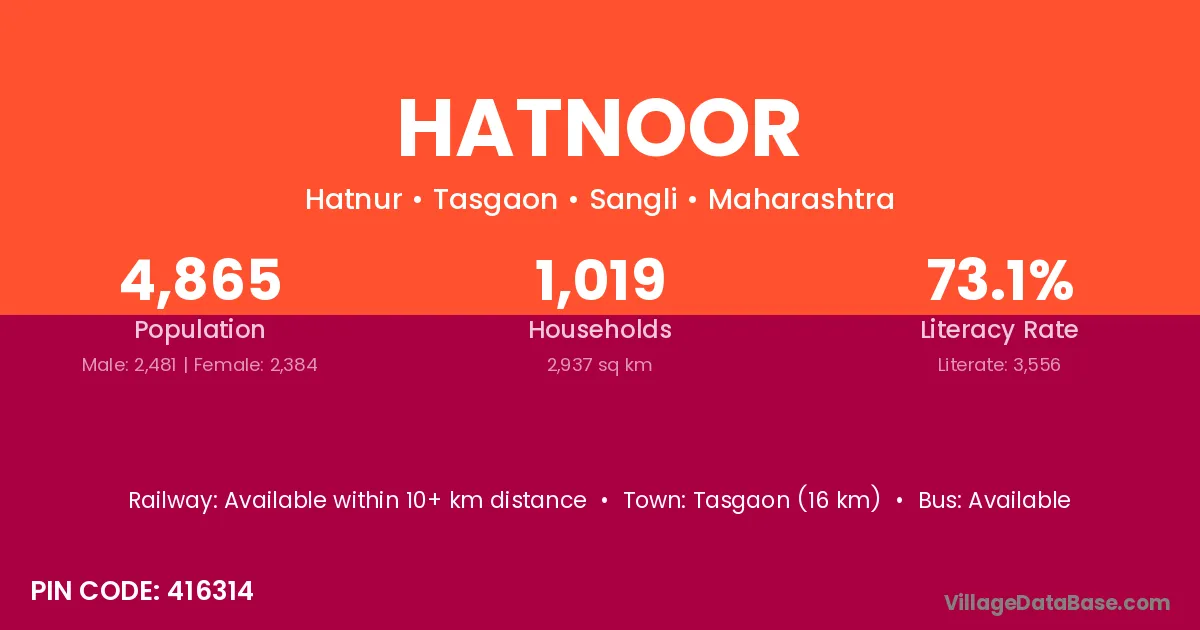 Sailu (14 km) is the nearest town to Hatnoor village for major economic activities and is located approximately 14 km away.