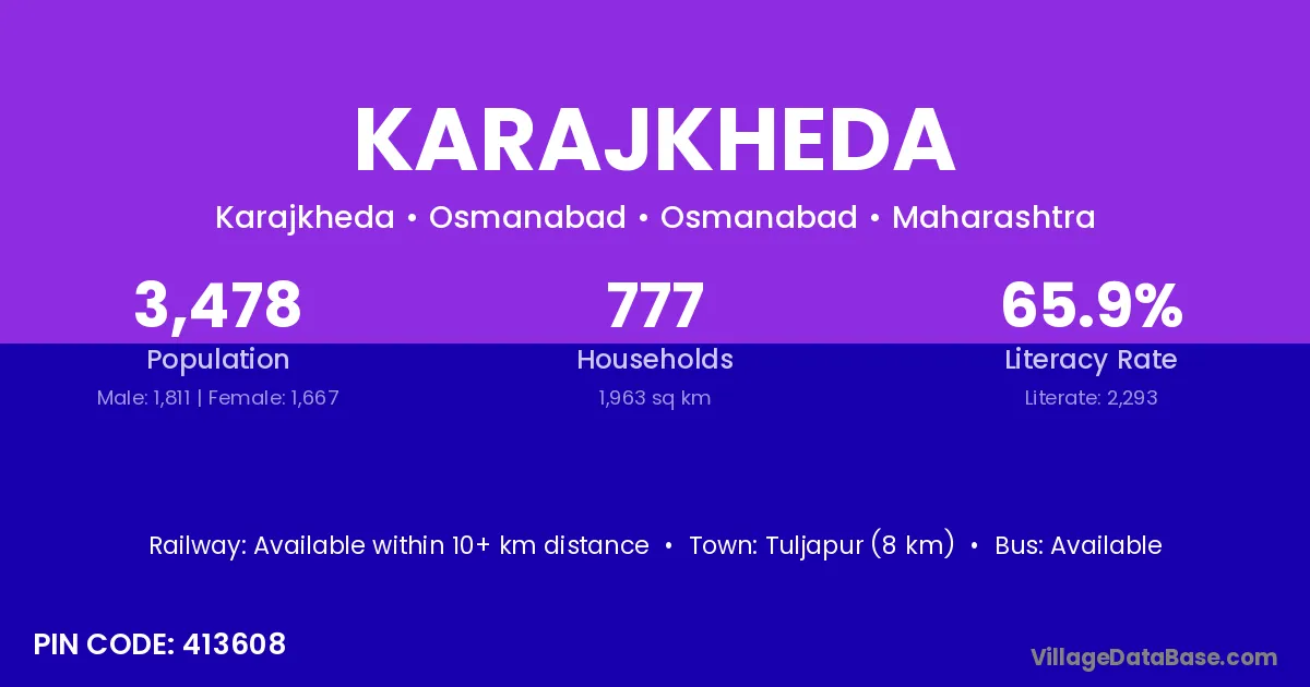 Sailu (18 km) is the nearest town to Karajkheda village for major economic activities and is located approximately 18 km away.